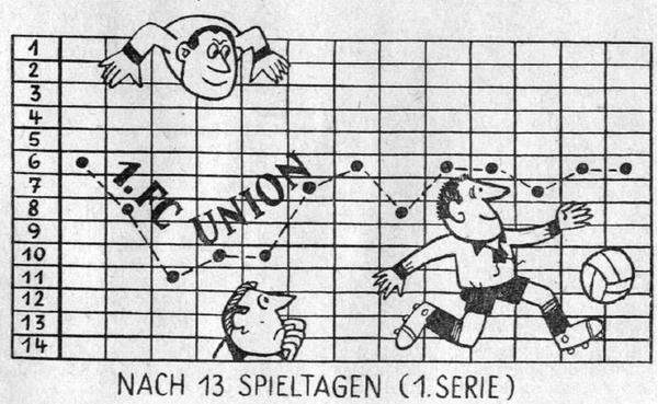Paul Fettback, segretario dell’Union Berlin (e futuro presidente dal 1970 al 1974) accolse il giornale con queste parole: «E’ ormai trascorso un anno dalla nascita della terza squadra di calcio a Berlino e se ci guardiano indietro, possiamo affermare senza dubbi che il bambino nato 12 mesi fa è già diventato un giovanotto robusto». L’Union-Informationen, oltre a contenere statistiche, grafici, notizie sulla squadra e commenti sia di sostenitori che di lettori, ospitava vignette, disegni e caricature di Horst Schrade, vignettista da tutti conosciuti con lo pseudonimo di Knobbi. Scomparso il 27 febbraio 2014 all’età di 89 anni, Schrade era stato fiore all’occhiello della rivista fino agli anni Ottanta: suo era il personaggio “orso-pallone” disegnato per il club di Berlino Est e divenuto subito icona della società.