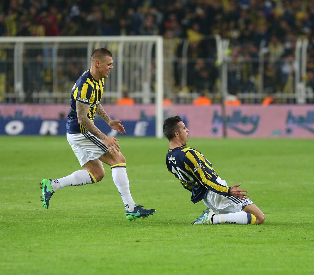 Il primo tempo non regala grandi emozioni perché entrambe le squadre sembrano aver paura di affondare, anche se il Fenerbahce lascia intravedere trame di gioco interessanti mentre il Galatasaray stenta a manovrare nella metà campo avversaria. Il match fila liscio fino al 45′, quando Ozbayrakli viene servito tutto solo sulla fascia destra e può centrare per Van Persie che di destro la mette sotto la traversa. 1-0 e tutti negli spogliatoi.