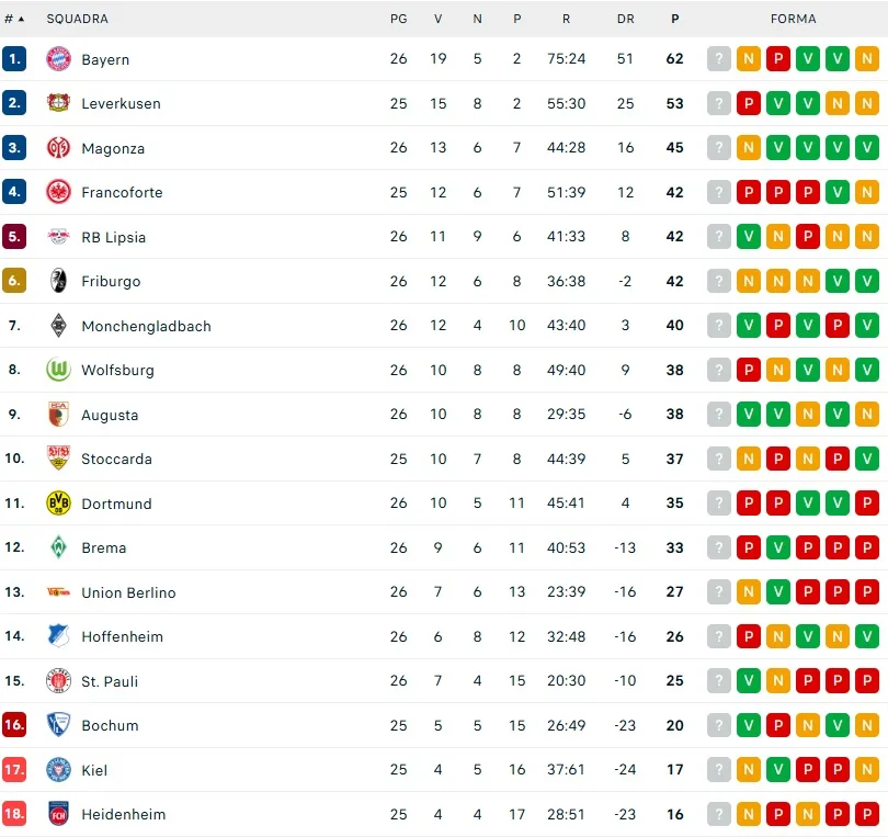 Il pareggio non altera la vetta della Bundesliga, ma cambia le prospettive. Il Bayer Leverkusen, con una partita in meno, potrebbe ridurre il gap a sei punti. Xabi Alonso e i suoi uomini osservano da lontano, consapevoli che la stagione potrebbe ancora riservare sorprese. Il Bayern resta favorito, ma un piccolo segnale d’incertezza ha riacceso la speranza. Basterà per rimettere in discussione il titolo?