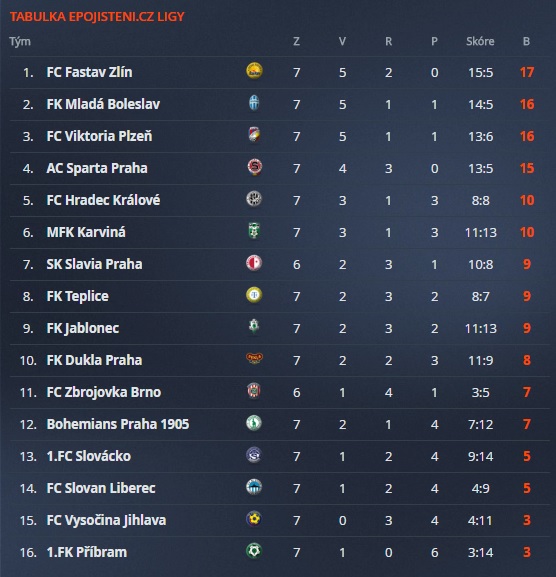Torna a vincere lo Slavia Praga e lo fa per la prima volta da quando Silhavy siede sulla panchina biancorossa. I capitolini superano di misura lo Slovan Liberec grazie alla rete del solito Milan Skoda che, sugli sviluppi di un calcio d’angolo viene servito splendidamente da Husbauer, siglando la rete che risulterà decisiva ai fini del risultato con un tocco da pochi passi. Nell’occasione è grave l’errore dell’estremo difensore dello Slovan, Dubravka, che sbaglia il tempo dell’uscita lasciando la porta sguarnita. Lo Slavia sale a quota 9 punti mentre è sempre più in bilico la panchina di Trpisovksy, con il Liberec che dopo il pari nel primo turno di Europa League a Baku contro il Qarabag occupa momentaneamente il terz’ultimo posto della classifica con solo 5 punti conquistati in 7 incontri.
