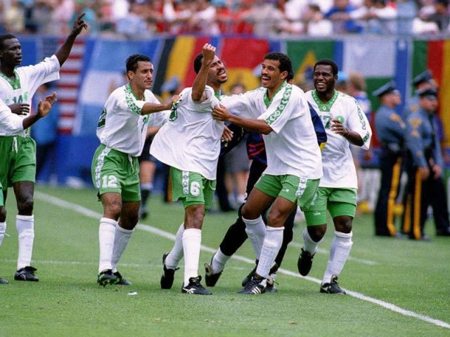 Per quanto riguarda l’Arabia Saudita la tradizione è leggermente più consolidata, infatti a cavallo tra il 1994 e il 2006 i “figli del deserto” presero parte a ben quattro mondiali: in ordine prettamente cronologico a USA ’94, Francia ’98, Giappone-Korea 2002, Germania 2006. La migliore performance risale proprio al debutto in terra americana, dove la nazionale saudita riuscì ad arrivare sino agli ottavi di finale, dove venne eliminata dalla grande Svezia di allora (3-1 con doppietta di Andersson e rete di Dahlin). Ma la grande sorpresa fu la qualificazione ottenuta nella fase a girone, dove riuscì a conquistare 6 dei 9 punti totali a disposizione. L’unica sconfitta arrivò nel match inaugurale contro l’Olanda (vittoriosa in rimonta per 2-1); in questo caso il nome a passare alla storia fu quello di Fuad Amin, autore della prima rete assoluta in un Mondiale nel match contro l’Olanda. Nelle altre due partite, invece, furono Marocco e Belgio a cadere al cospetto della terribile matricola saudita. Ma queste rimasero le uniche due vittorie in una fase finale di un Mondiale, infatti nelle tre partecipazioni successive arrivarono due pareggi e sette sconfitte. Non proprio negativa l’ultima apparizione in Germania, dove sì la selezione saudita fu eliminata ai gironi ma riscattò in parte la brutta figura dei Mondiali nipponici-coreani dove era uscita con le ossa rotte (8 reti dalla Germania, una dal Cameroon e tre dall’Irlanda). In terra tedesca arrivò un solo punto nel match contro la Tunisia all’esordio (2-2 beffa con rete del pari tunisino di Al Jaish al 92esimo), mentre successivamente i sauditi dovettero alzare bandiera bianca al cospetto di Spagna (1-0 onorevole con rete decisiva di Juanito) e Ucraina (poker devastante firmato da Rebrov, Shevchenko, Rusol e Kalynychenko).