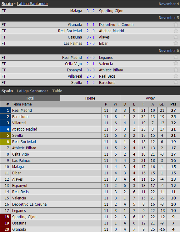 RISULTATI E CLASSIFICA LIGA 11ESIMA GIORNATA