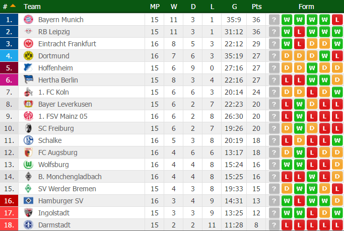 BUNDESLIGA, RISULTATI SEDICESIMA GIORNATA