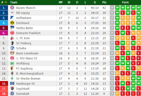 CLASSIFICA BUNDESLIGA