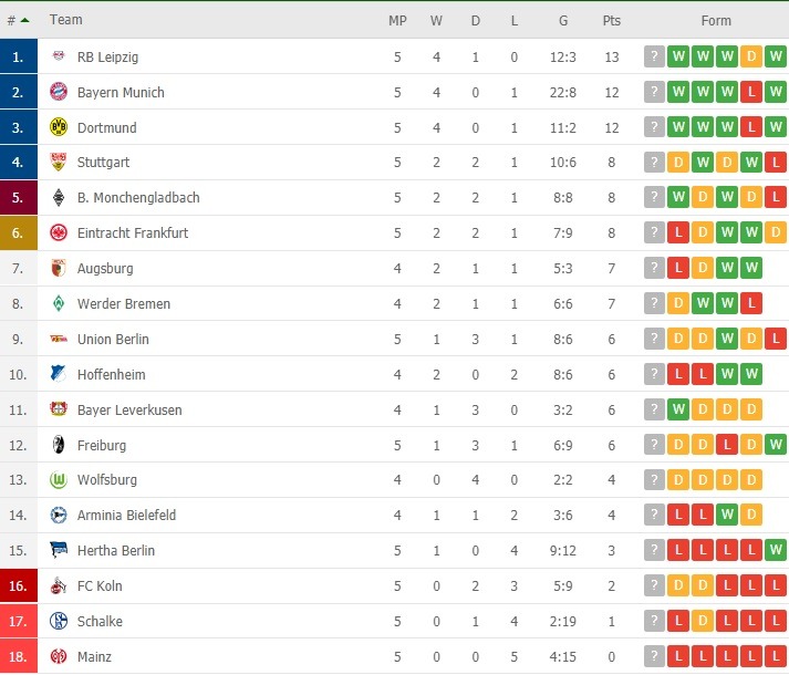 Rischia il k.o. il Borussia Monchengladbach, reduce dal 2-2 in Champions contro l’Inter, in casa del Mainz. Rose sceglie il turnover massiccio, il gol di Stinder al quarto d’ora mette la partita sui giusti binari per il Gladbach. Il Mainz, ultimo in classifica a 0 punti, la ribalta prima dell’intervallo con una bella doppietta del francese Mateta, con in mezzo una traversa colpita da Hermann con una conclusione dal limite. Ad inizio ripresa entrano i big nel Borussia, Thuram si procura il rigore realizzato da Hofmann al 76′ e Ginter firma il gol vittoria con un colpo di testa, a sette dalla fine, su azione d’angolo. Union Berlino e Friburgo (Grifo a segno) pareggiano 1-1 e restano a metà classifica.
