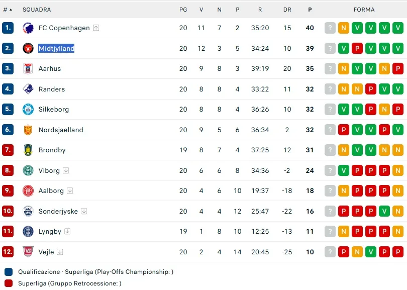 La Superliga danese ha regalato un fine settimana ricco di colpi di scena, con il FC Midtjylland che ha accorciato il divario dalla capolista FC Copenhagen, approfittando del pareggio a reti bianche dei campioni in carica ad Aalborg. Nel frattempo, il Vejle ha subito una dura battuta d’arresto contro il Viborg, mentre il Silkeborg ha mantenuto vive le speranze di un piazzamento nella Top 6 con una vittoria convincente.