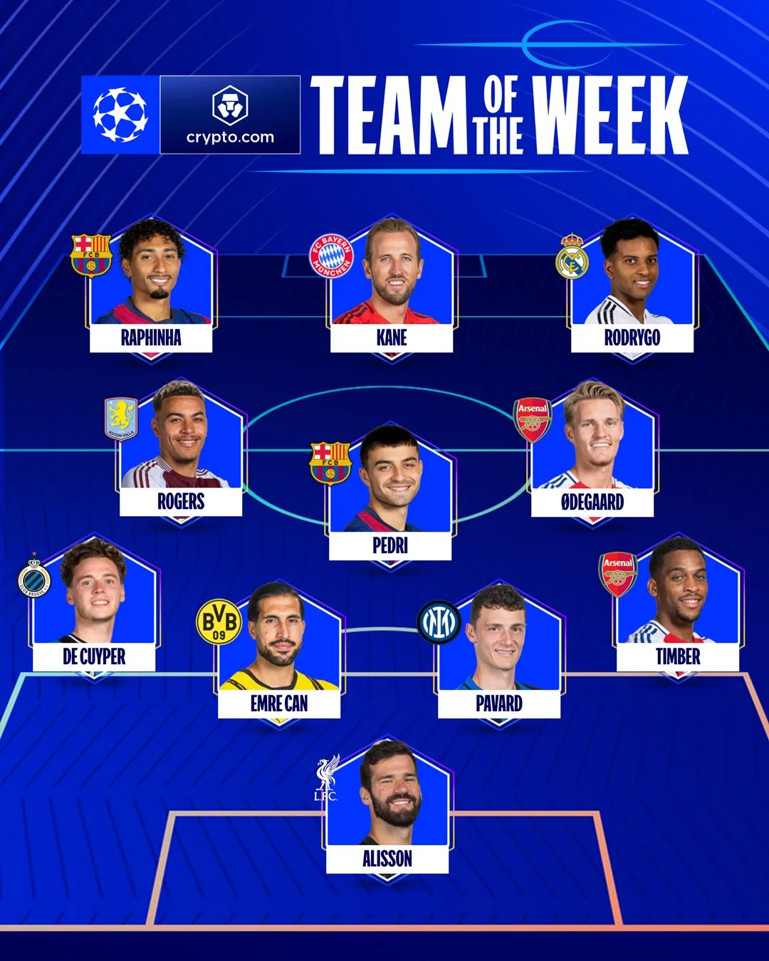 La UEFA ha stilato la classifica dei migliori della settimana e, dietro Alisson, si sono piazzati altri protagonisti di spicco. Al secondo posto si è classificato Rodrygo, autore del gol che ha aperto la rimonta del Real Madrid nel derby di Champions contro l’Atlético (2-1). Terza posizione per Harry Kane, che con la sua doppietta ha trascinato il Bayern Monaco alla netta vittoria per 3-0 sul Bayer Leverkusen. Chiude il quartetto Martin Odegaard, capitano dell’Arsenal, che ha firmato due reti nello storico 1-7 inflitto al PSV, un risultato senza precedenti nelle fasi a eliminazione diretta della competizione..