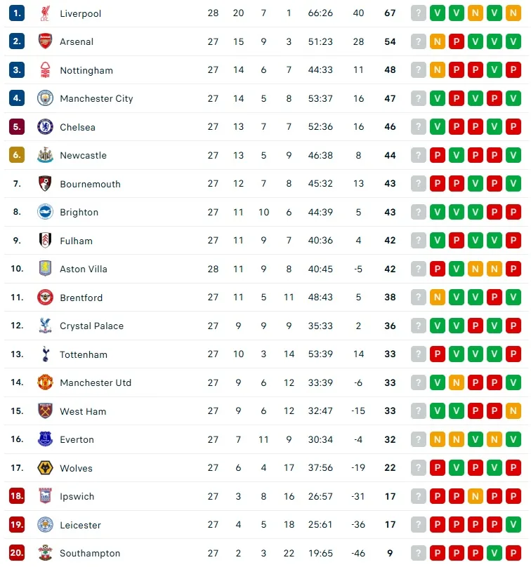 Il City è attualmente quarto in classifica, tallonato da un Chelsea in ripresa e con il Forest che precede di un solo punto. La squadra di Nuno Espírito Santo, che a dicembre sembrava lanciata verso un clamoroso piazzamento europeo con sei vittorie consecutive, ha poi rallentato il passo vincendo solo due delle ultime sette gare.