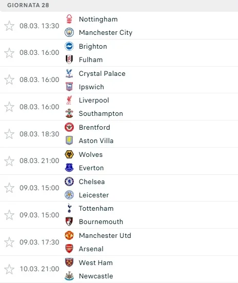 La Premier League si avvia verso il rush finale con un Liverpool saldo in testa e una corsa serrata per i posti che garantiscono l’accesso alla prossima Champions League. Mentre i Reds si preparano ad affrontare il fanalino di coda Southampton, l’Arsenal cerca conferme a Old Trafford e il Manchester City si gioca punti pesanti sul campo del Nottingham Forest.