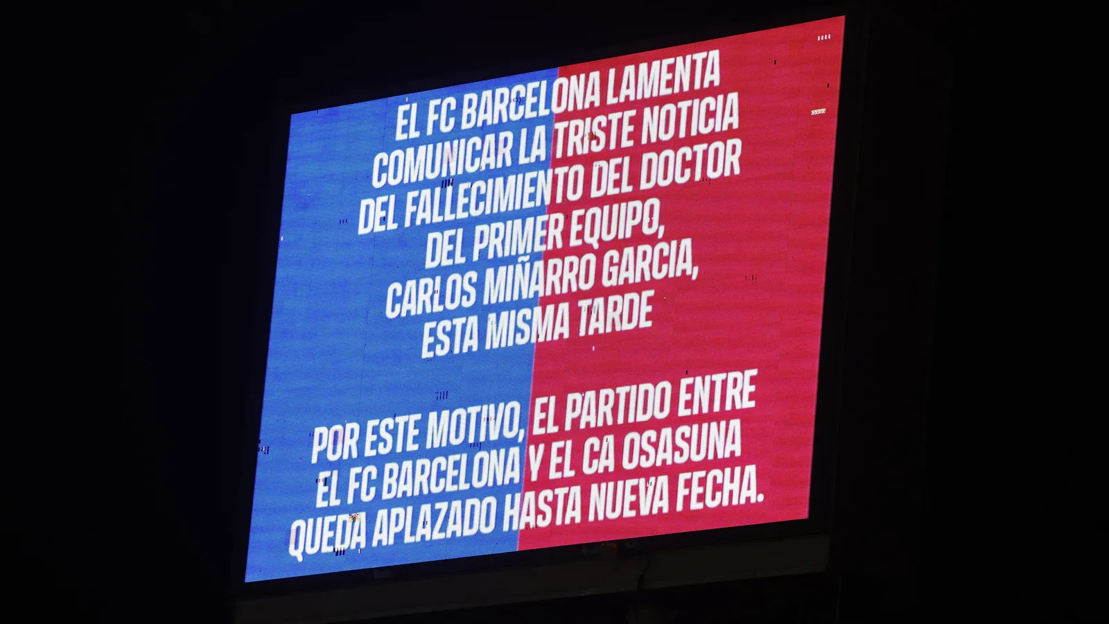 I due club si erano presentati al Montjuïc come da programma, con le formazioni già consegnate agli ufficiali di gara. Tuttavia, mentre l’Osasuna procedeva normalmente con il riscaldamento, nessun giocatore del Barcellona metteva piede in campo. Nel frattempo, la notizia del decesso di Miñarro si diffondeva tra i presenti. A quel punto, i due club hanno rapidamente trovato un accordo per il rinvio e informato la RFEF, senza che ci fossero opposizioni da parte del direttore di gara.