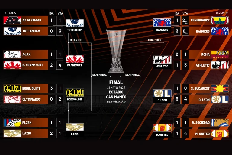 L’Athletic Club, trascinato dal pubblico di San Mamés, sogna di conquistare il trofeo in casa, ma i Rangers hanno già dimostrato nei turni precedenti di essere una squadra capace di soffrire e colpire al momento giusto. Intanto il Tottenham, forte del successo sull’AZ Alkmaar, punta a interrompere un lungo digiuno europeo, ma dovrà vedersela con un Eintracht mai domo.
